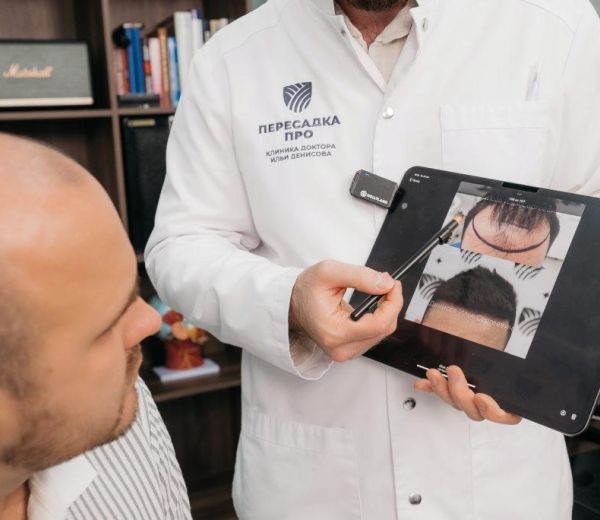 Встреча проходит с хирургом-трансплантологом, который оценивает степень выпадения, состояние волос и донорской зоны, проводит подробный опрос о хронических заболеваниях и формирует персональный план пересадки. После консультации пациент получает направление на анализы – для подтверждения готовности к операции.